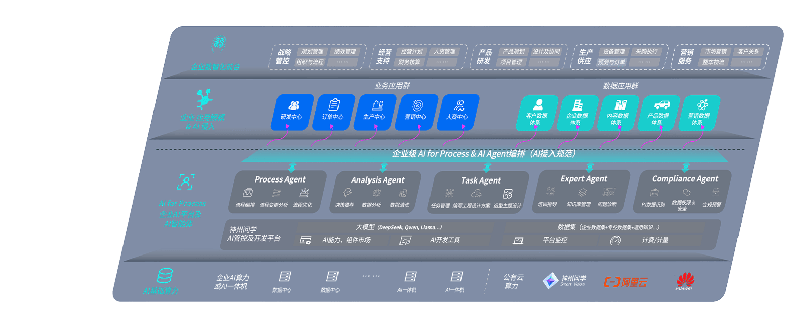 端到端的一站式AI工作空间深度融合了从企业战略规划到日常经营的全流程业务板块,,,定向解决车企内部领域多、、、部门多、、链条长、、、、场景碎片化等难题,,,支持车企快速构建以AI为核心的生产力写作体系,,,实现任务执行与AI能力的无缝集成与交互